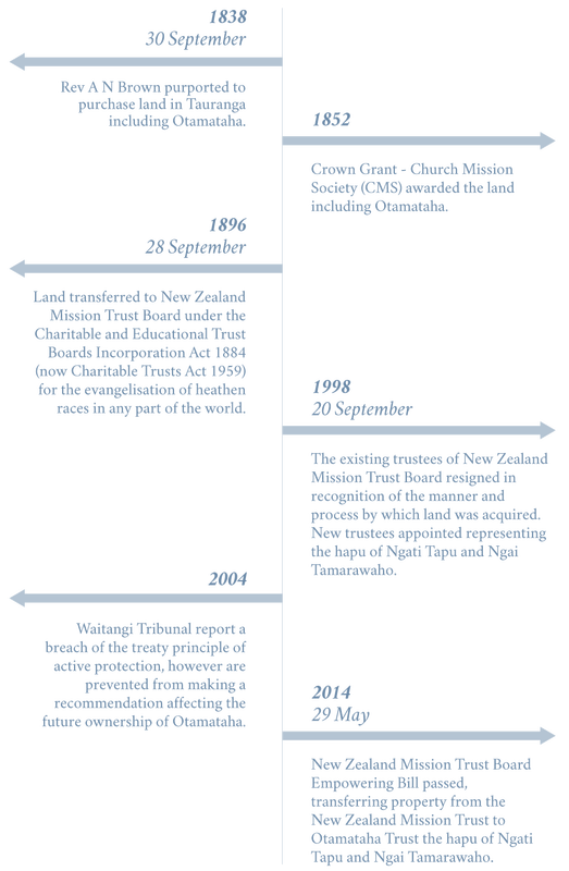 The Waitangi Tribunal in its 2004 report Te Raupatu o Tauranga Moana: Report on the Tauranga Confiscation Claims, after considering the manner in which a Crown Grant for the land including Otamataha was awarded to the Church Mission Society in 1852, concluded at page 218: